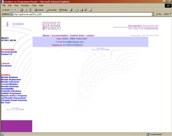 The advisor option gives a student access to the contact details for the member of staff that has been designated as their advisor. The screen will look similar to that shown below.